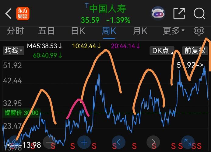 下周开始中国人寿股价会走出新一轮下跌。大家不要灰心,中国人寿越是下跌,应该加仓。涨起来时反而要减仓。否则就拿着不动。各种看似在教育大家如何交易的行为,其实都是欺骗。券商只是为了多挣手续和可用资金利息。如果大家都是买入不动,他们的收益就会减少。