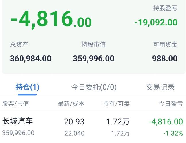 $长城汽车(SH601633)$大学生零花钱炒股,何时解套啊