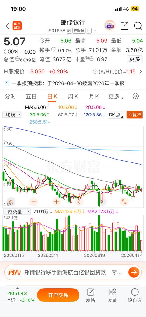 邮储银行,4月15号,清仓5.08。4月17号,已建仓5.05。