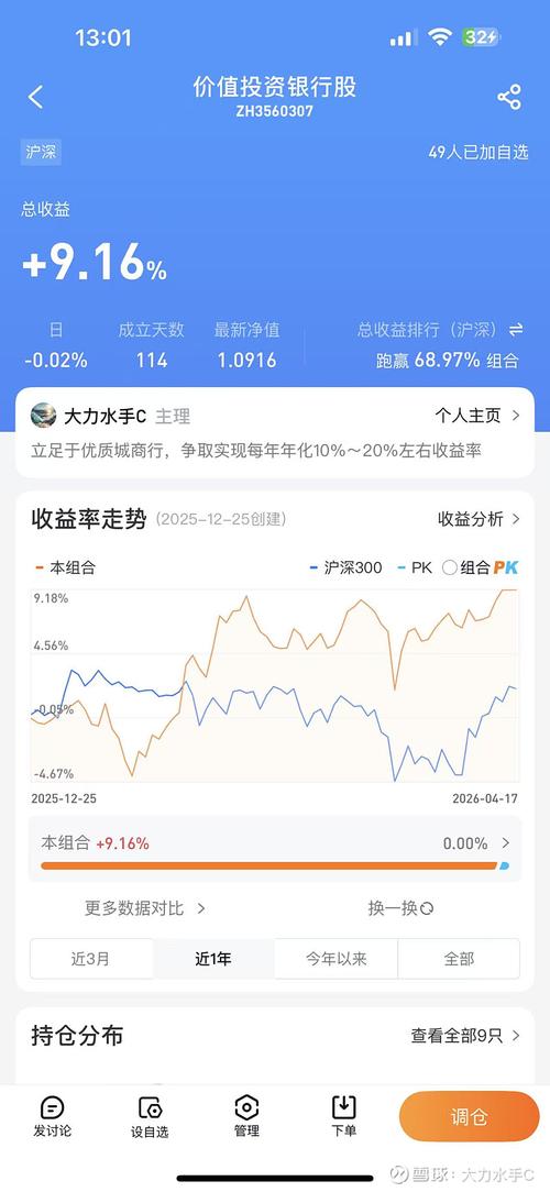 2026年截止到4月18号为止三大指数全线上涨,其中上证涨幅为2.08%,深证涨幅10.06%,创业板涨幅为14.83%,其中楼主重仓的银行股板块涨幅为-0.87%。 楼主账户今年以来涨幅达到25.45%(截止到26年4月18日,24年2月开通融资),跑赢上证涨幅23个点左右,跑赢银行指数26个点左右。主要是重仓的青岛银行今年涨幅17.41%,杭州银行涨幅11.19%,齐鲁银行今年涨幅9.25%均...