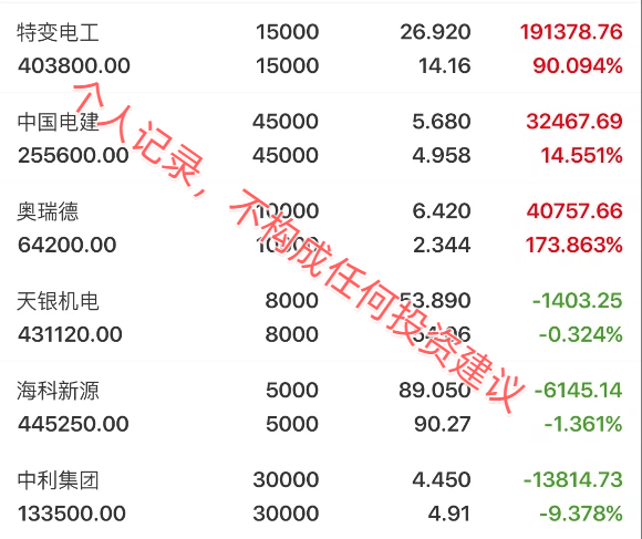 个股观察:(个人观点,不构成任何投资建议) 中国电建 央企基建昨日稍微回调了点,整体走得偏弱,成交量还行。绿电板块在反弹,风光股有动静,但冷热不均。算电协同概念热度还在,算力和绿电配合得不错,资金主要盯着有政策利好的标的,整体是结构性机会,没那么普涨。 昨天电建依然是被板块节奏走着,资金进出依然很平淡,没有什么可以去解读的,我个人觉得长线继续拿着等风来了,短线暂时在电建这里没啥玩头, 特变电工 输...