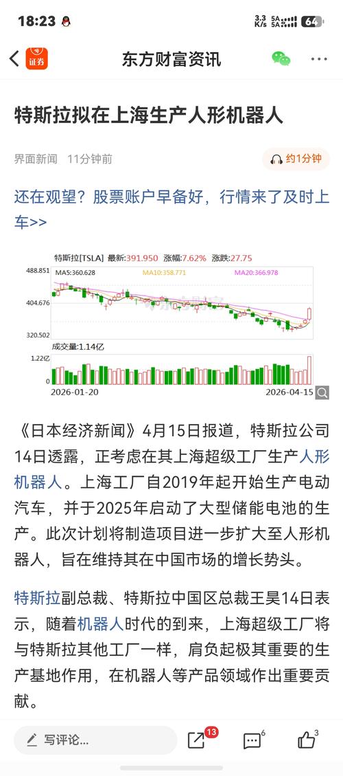 #社区牛人计划# 【特斯拉拟在上海生产人形机器人】《日本经济新闻》4月15日报道,特斯拉公司14日透露,正考虑在其上海超级工厂生产人形机器人。上海工厂自2019年起开始生产电动汽车,并于2025年启动了大型储能电池的生产。此次计划将制造项目进一步扩大至人形机器人,旨在维持其在中国市场的增长势头。 特斯拉副总裁、特斯拉中国区总裁王昊14日表示,随着机器人...