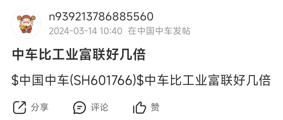 $中国中车(SH601766)$昨天涨比大盘少涨一个点,今天跌比大盘多跌一个点,真会玩
