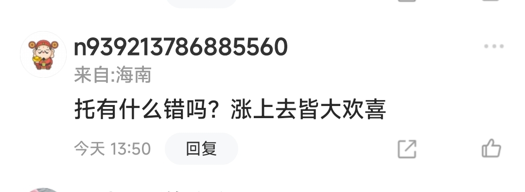 295- 股市有人看多有人看空,绝无一致,毕竟零和贝者场。既然看空,大可不必在此消耗宝贵时间。就上面所举股票,未涨起来谁敢看到那么高?工业富联,值这个价吗?寒武纪,又值那个值吗?反正我是不敢碰!48的中石油我有过,三百的中国船舶我也有过,最后不是割肉,是连骨都锯了一段了。大A不是散户说了算的,主力说一坨值一百块钱,那就值一百。我现在全都在中车,能T就T,能放就放,能守就守。主力再厉害,又能奈我何?他能一去不回头,不大波段小波段总要吧?你敢波动,我就敢T,我不赚大钱,你拉高我就给你,只留仓底,你大跌,我就补仓,只要成本做低了,总有一天上海爷叔也有出头日。朋友们,心平气和,和气生财,财源广进,如何?!