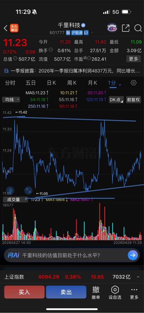 $千里科技(SH601777)$根据观察千里马正在做收敛三角形,位置在11.05-11.42之间来回震荡。这两个位置都是向下和向上的关键节点。