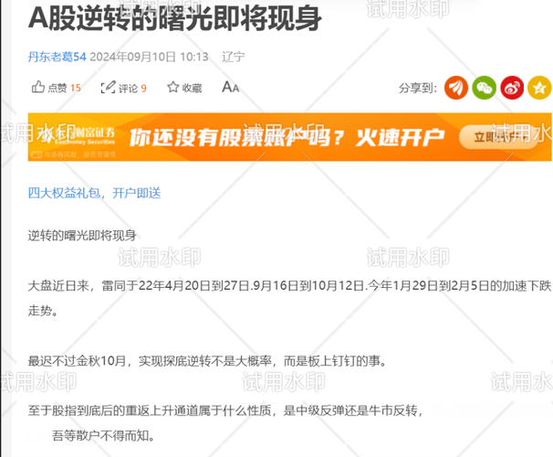 很多事实验证老葛对A股走势的精准预测举国无人可及(一) 馒头里包豆渣,人家不夸自己夸。 远的没人看,提也是瞎子点灯白费蜡,就以离得近一些的,9.24行情前后至今的N次股指转折点的精准预测为例: 一.此轮牛市崛起前9月10日,笔者发文预报大盘逆转即将发生,结果行情于24年9月24日如期而至: (未完待续)