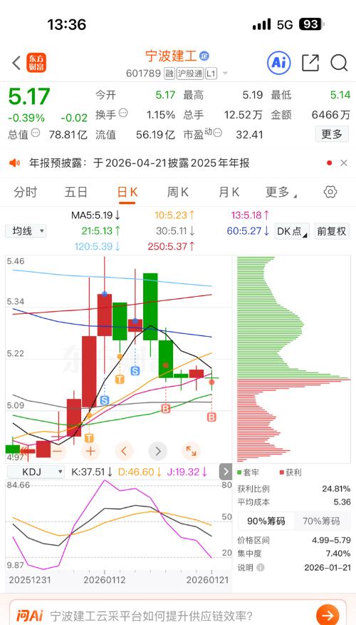 $宁波建工(SH601789)$5.19元9000多手压单么呀