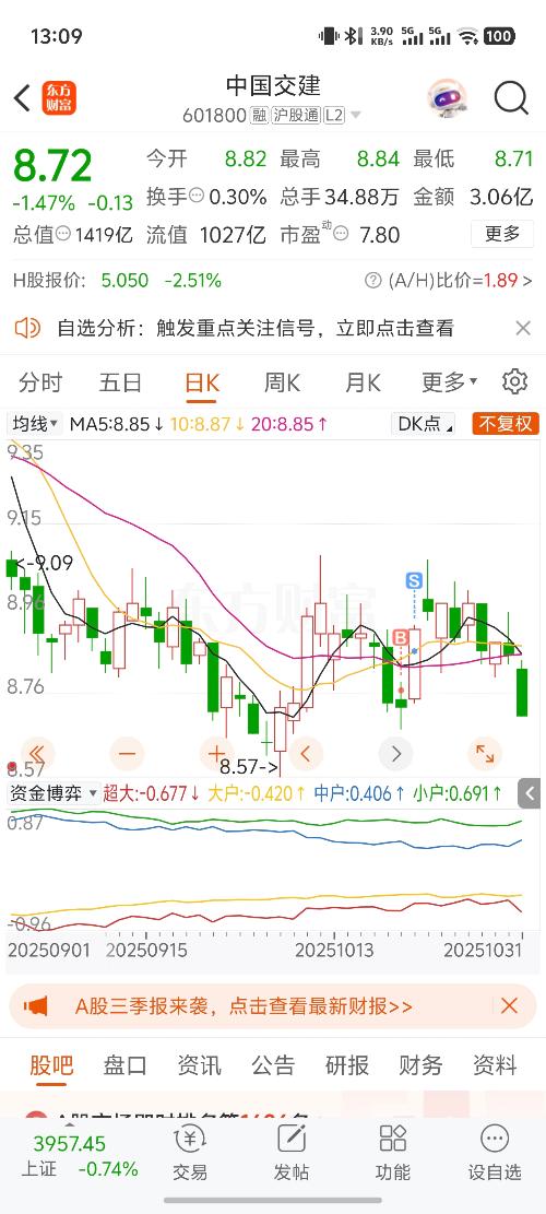 随机属性 更新于 今天 13:56 136次浏览 $中国交建(SH601800)$我中间买了一次,现在能买了吗?还是等到8.5附近? 31