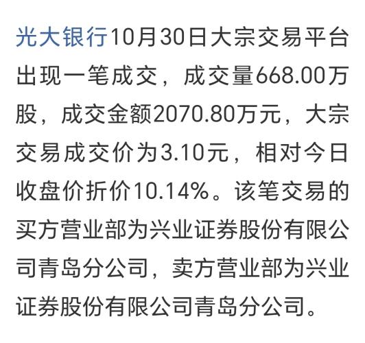 $光大银行(SH601818)$本月27日和30日两起大宗交易都是668万股有没有问题?!!!请老铁们评评