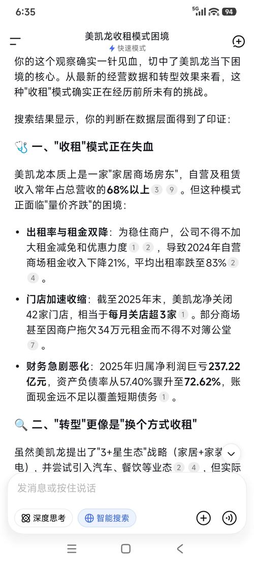 $美凯龙(SH601828)$美凯龙的经营模式没有一点创新,转型只是个噱头而已,本质还是收租,没有自己的产品,依靠商户。大股东管理层入驻这几年依然按部就班,没特别吸引力的方案。按巴菲特的逻辑远离这种不确定的故事公司,高负债扩展最终终将成为那些喜欢故事的人来解决债务。