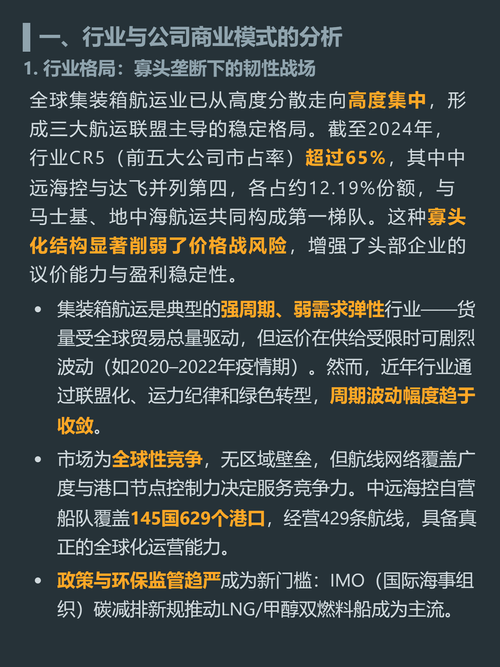 $中远海控(SH601919)$$中远海发(SH601866)$$中远海运国际(HK|00517)$很多人觉得中远海控是靠疫情运价暴涨的周期妖股,其实它已经是稳得离谱的全球贸易现金牛。 全球集装箱航运现在是寡头垄断格局,前五家市占率超65%,根本打不起价格战,头部公司议价权和盈利稳定性比以前强太多。中远海控是第一梯队成员,自营航线覆盖145国629个港口,是实打实的全球贸易动脉运营商。 它的核心优...