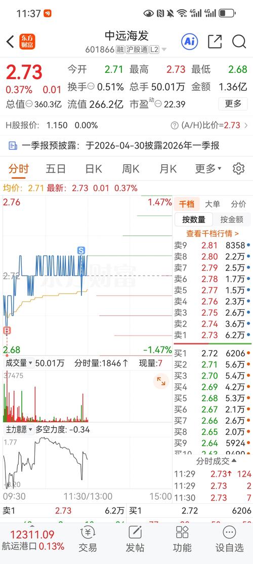$中远海发(SH601866)$兄弟们,其他人发言不必要理会,2.75-2.76进没问题,拿着就行。尾盘我在看有啥票,今天中间不会入其他票了