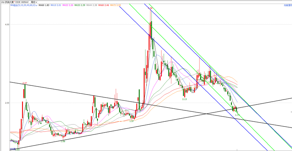 #炒股日记##复盘记录##股市怎么看##收盘点评##社区牛人计划# $供销大集(SZ000564)$ 在周线下分析投资标的 投资标的在绿色和蓝色阻支区间内震...