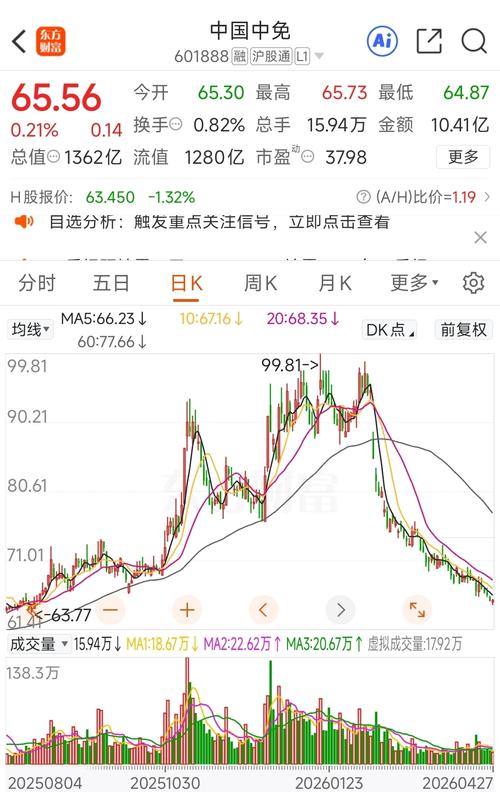 $中国中免(SH601888)$日线级别底背离,反弹能到70吗?
