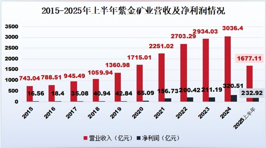 - 紫金矿业,投资并购无止境,资产膨胀无止境,业绩增长无止境! 紫金矿业自主勘探与投资并购双轮驱动,持续高成长,净利润近6年复合增长率49.5%,当前约16倍市盈率,严重低估,应享有40~50倍的市盈率,股价至少应该翻倍! 紫金矿业近些年净利润连续快速增长,从2019年的净利润42.84亿元算起,到2024年的320.5亿元,复合增长率为49.5%,持续高成长。 2025年三季报,归母净利润378.6亿元,同比增长55.45%,经营净现金流521亿元,增长44.3%,远高于净利润,当前约16倍市盈率,严重低估。凭借紫金矿业持续性的50%左右的净利润复合增长率,再加上龙头企业溢价,应该给予40-50倍市盈率估值才合理,股价至少应该翻一倍到两倍。 紫金矿业自主勘探与投资并购双轮驱动,资产数量和营收净利持续增长,使得股价虽然不断上升,但市盈率和估值仍处于历史低位。 尤为突出的是,紫金矿业赚的钱,是真正的“真金白银”,盈利质量极高。 2024年,公司净利润320.5亿元,同比增长51.76%,经营现金流达到488.6亿元,同比增长32.56%,且远高于同期净利润;2025年上半年,净利润232.9亿元,增长54.4%,经营现金流288.3亿元,增长41%,同样远高于同期净利润。 这说明,紫金矿业的经营回款极佳。赚的“钱”能真真切切落袋,而非停留在纸面上。 因为业绩不断增长,所以公司股价虽然不断上升,但估值得到消化,市盈率始终处于低位。 按照今年500亿元净利润的保守估算,公司当前市盈率约16倍左右,而其历史平均市盈率超26倍。 紫金矿业,投资并购无止境,资产膨胀无止境,业绩增长无止境!