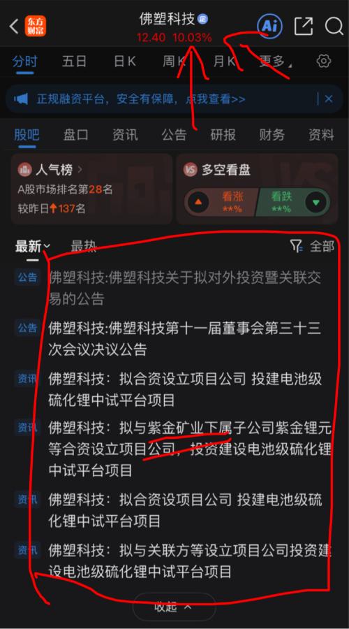 佛塑科技发了公告,跟紫金矿业子公司联合成立电池极硫化锂公司,佛塑今天涨停板了,紫金矿业没有公告?一点反应也没有,这是为何?朋友们,不但要公告还要增加锂电池概念!