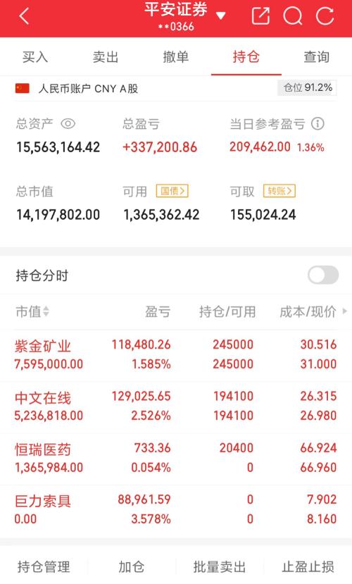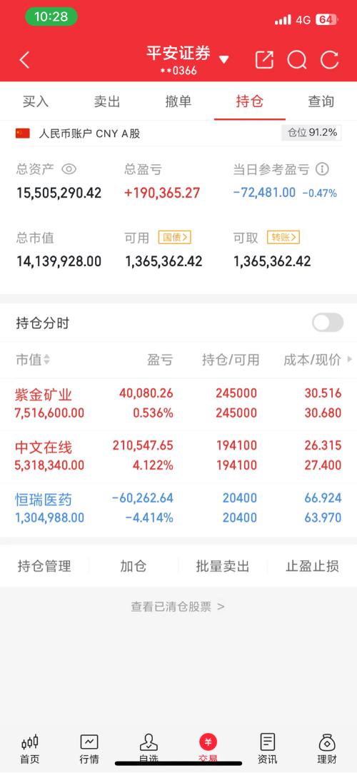 10.28继续持有$恒瑞医药(SH600276)$$紫金矿业(SH601899)$$中文在线(SZ300364)$这支具备增长潜力,我满怀期待,相信随着后续市场的发展,达成盈利目标。 介入 在此特别提醒,本人所发表的所有内容仅代表个人建议与观点。