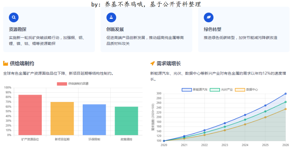 2941- 紫金矿业,连续22年分红,营收和净利持续增长,不断降低市盈率,自主勘探与投资并购共舞,资产数量不断增加,跨越周期,成长无止境! 用分红继续买入股票,股票会越来越多,分红也会越来越多,同时营收净利和资产数量也在不断增加,股价会越来越高。利用资产增值和分红增加二元逻辑,滚雪球操作,长期实现复利倍增。 紫金矿业,自主勘探与投资并购共舞,资产数量和业绩持续增长,连年分红,主要矿产黄金和铜量价齐升,美元长期贬值趋势下,又开始进入降息周期,贵金属价格有望持续波动抬升。龙头崛起,价值低估,下方空间很小,上升空间巨大,未来更美好! 紫金黄金国际以71.59港元/股独立上市,募资约287亿港元,获得更好发展能力,利润增长会更多更快,负债率降低,估值也得到提升。母公司紫金矿业控股85%,财务并表后会同步受益,净利,净资产和市值得到更大提升,负债率降低,变得更强大。子强母壮,非常浅显不过的道理。 紫金矿业,中国黄金和铜储量及产量最大的龙头企业,同时白银,锂,铅锌,钼,钴,钨,铁精矿等品种也有较多储量和产能。 发展电力,新能源,军工,汽车,高铁,家电,机器人,计算中心和数据中心,芯片等高端装备和产业,都离不开铜,钴,钨,锂,钼,稀土等关键金属材料。 未来十年,铜供给增加有限,而需求稳定增长,供需不平衡导致铜价易涨难跌。 按照铜的消费结构,电力行业占比约45%-48%,是铜最大应用领域,主要用于电网建设、变压器、电缆等;其次为交通运输,占比12%-15%,新能源汽车用铜量是燃油车的4倍(单车约80-120kg);建筑行业占比8%-10%,受房地产调控影响增速放缓,但绿色建筑(如铜水管、光伏屋顶)提供新增长点;家电/电子:占比14%-15%,智能家电、5G基站、数据中心等驱动高端铜材需求;新能源(风光电)占比快速提升,光伏单GW耗铜约90吨,风电单GW约40吨。 总量方面,机构预测2025年全球铜需求约2800万吨,年均增速4%-5%(历史均值2%),电力和新能源车为核心增量。2030年全球需求或突破3000万吨,未来5年铜需求增量主要来自新能源车+风光电+电力基建三大领域,年均增速超4%。 长期来看,供给端增量有限,结构性矛盾突出,需求端中长期看新能源行业依然是推动全球铜消费增长的主要动力之一。 此外,美元开始进入降息周期,美元贬值趋势导致贵金属大宗商品价格有望持续波动抬升。