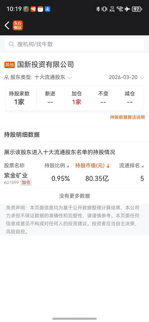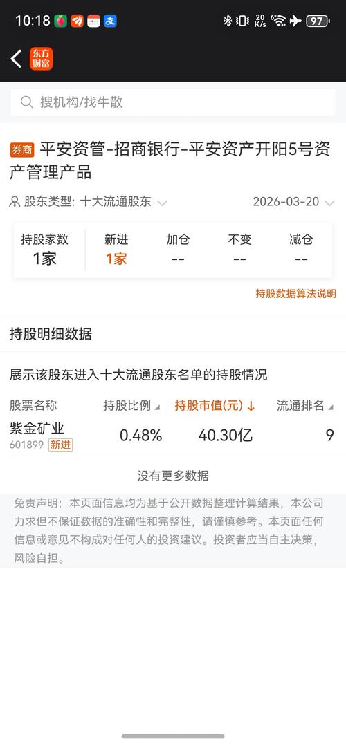 紫金矿业2026年3月20日机构主力加仓数据