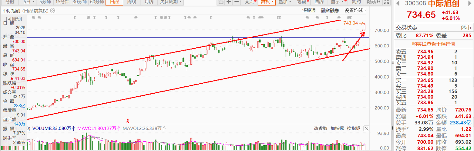 4月13日盘前分享个人观点 紫金矿业 中际旭创 特发信息