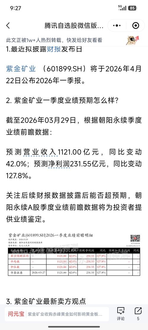 232- 紫金矿业在一季报发布前迅速果断地动用25亿元回购股份,侧面印证了一季报业绩增长强劲。或许在一季报发布后,不可能有这么低的价格了。 紫金矿业2025年归母净利润517.77亿元,同比增长61.55%,经营净现金流754.3亿元,增长54.38%,加权平均净资产收益率(ROE)提升至33.04%,每10股分红3.8元,并动用25亿元人民币来回购A股股份。当前不足17倍市盈率,2026年一季报即将发布,预计大幅增长,市盈率将降为10倍上下,严重低估。年报和一季报发布后,或将掀起更强劲的上升走势。 紫金矿业2026年多个项目投产,黄金、白银、铜、碳酸锂价格持续波动上涨,一季报和半年报将非常亮眼。 供需失衡,货币超发且处于美联储降息周期中,未来黄金和白银等贵金属以及铜,锂,钨等重要工业金属的价格易涨难跌,持续波动抬升。 2026年一季度和上半年,无论怎样波动,黄金,白银,铜和碳酸锂的价格相较于2025年一季度和上半年都大幅提升,同时,紫金矿业的巨龙铜矿二期,湖南湘源锂多金属矿等多个项目2026年开始投产,以及2025年并购的加纳和哈萨克斯坦金矿等项目增加营利,量价齐升作用下,紫金矿业2026年一季报和半年报的业绩将非常亮眼! 利润取决于产品的产量,成本和价格,以及价格区间维持的时间长短,短期的价格波动如果不能有效改变价格区间,对实际利润影响不大,比如短期下降后又快速上升。 黄金价格的短期调整,不改长期投资逻辑和上升趋势。货币超发,天量债务,去美元化。黄金产出有限,货币发行无限,美元信用持续下降,黄金上涨高不可测!