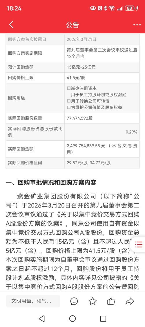 资讯 紫金矿业已回购7747万股,金额25亿元