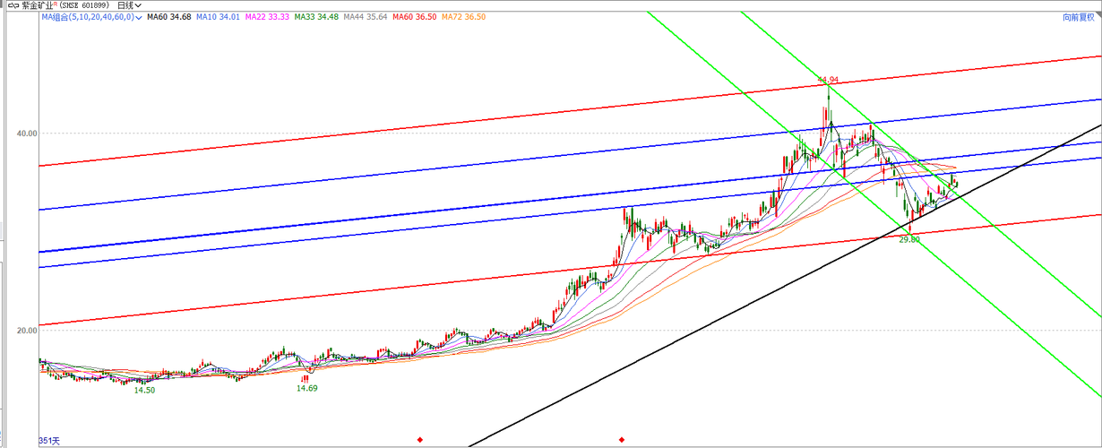 #炒股日记##复盘记录##股市怎么看##收盘点评##社区牛人计划# $紫金矿业(SH601899)$ 在日线下分析投资标的 投资标的现在处于上升趋势,用红色...