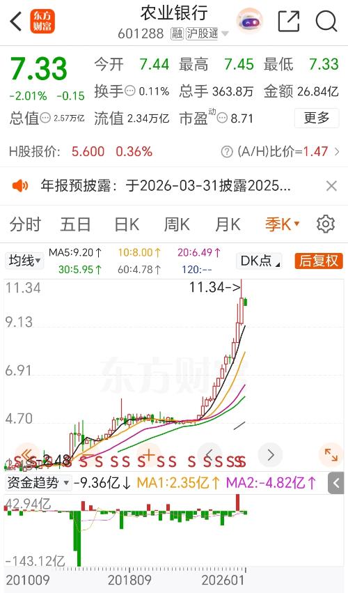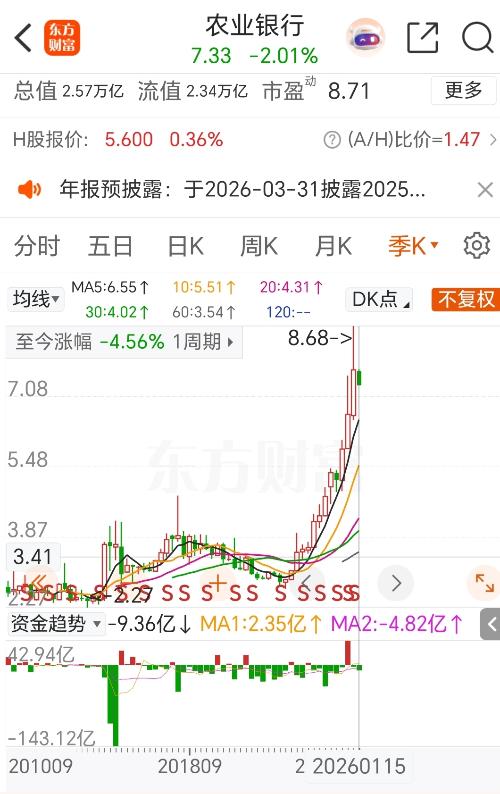 $中远海控(SH601919)$看国有几大行最近几年三季报业绩,其中建设银行、邮储银行业绩逐渐减少处于收缩状态,中国银行、工商银行业绩保持不变,而农业银行业绩处于增长趋势。 2025年这五大行股票中农业银行涨势最好、涨幅最大,业绩增长表现在股价的变化上。不过,当前7.33元股价的农行股利支付率30.01%时分红3.34%,较其他银行略低。 农行股价有两个阶段涨幅较大,第一阶段始于2014年,涨幅5...