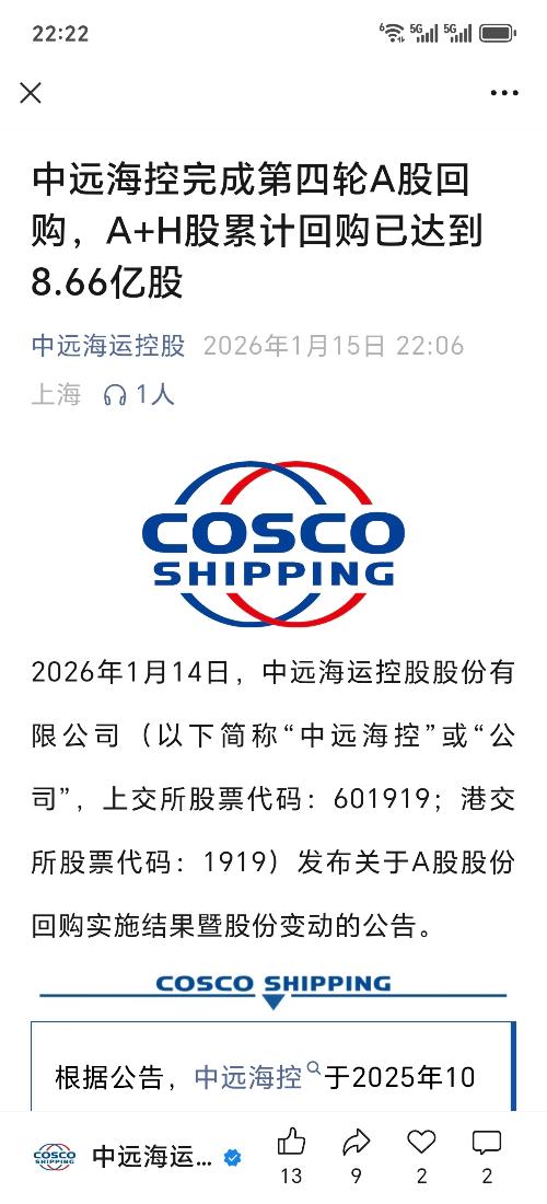 $中远海控(SH601919)$看来港股只是不明原因的暂停回购了,慢慢熬吧,希望守得云开见月明。