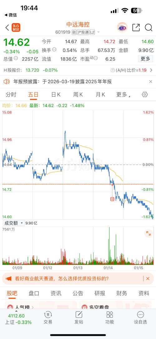 $中远海控(SH601919)$这是买在了半山腰啊