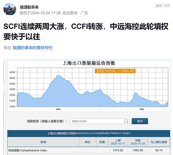 $中远海控(SH601919)$运价继续涨,下周接着奏乐接着舞