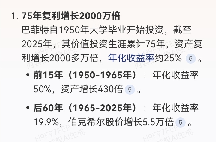 $中远海控(SH601919)$奉劝各位几句:一年五倍易,五年一倍难,做股票最好稳扎稳打,资金量少倒是可以做短线波段,追涨杀跌,迅速把蛋糕做大,但是资金量稍大一点就得考虑做相对稳定的投资,因为保住本金是不断复利的前提条件,股神巴菲特的平均年化收益率才不过20%左右,但人家可是持续做了80年,据统计其中75年的复利投资让其资产翻了2000万倍。别听个别人说什么在哪只股票上翻了几倍,在哪里又躲了牛市,...