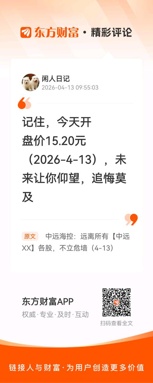 //@闲人日记:记住,今天开盘价15.20元(2026-4-13),未来让你仰望,追悔莫及