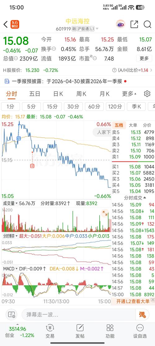 $中远海控(SH601919)$今天就不该接回来,这是明天破15的走势。