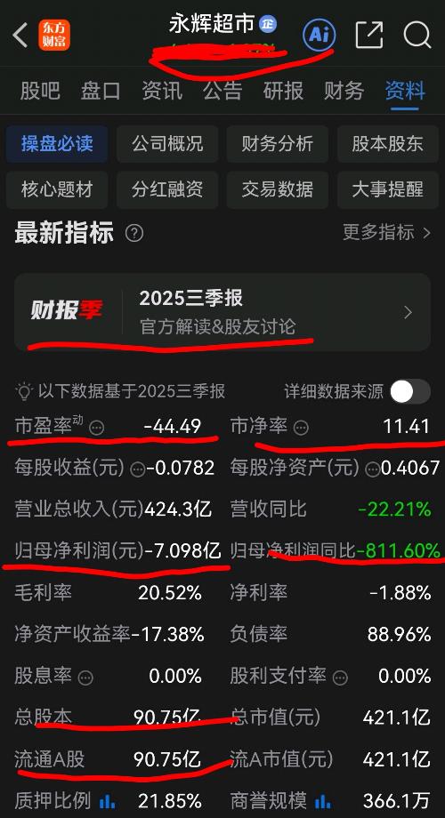 永辉超市三季度财报呈现出一幅典型的转型阵痛图景。2025年第三季度营收124.86亿元,同比下降25.55%,前三季度累计营收424.34亿元,同比下降22.21%。利润端表现更为严峻,三季度归母净利润亏损4.69亿元,扣非净利润亏损7亿元,较上年同期亏损进一步扩大。 这种业绩下滑背后存在双重压力。一方面,零售行业竞争加剧与消费者习惯变化导致存量普通门店客流、客单双双下滑;另一方面,公司主动进行的...