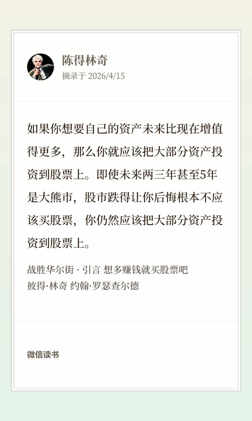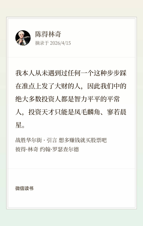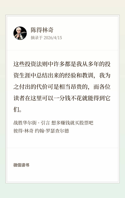 别催了,我知道你们想看刺激多巴胺的实盘周记。 但很遗憾,这篇伴读笔记,还是一篇枯燥的论道文。 市场最没用的就是短期的情绪反馈,真正决定你账户长期走向的,恰恰是这些不怎么让人兴奋的底层认知。 这周季报密集披露,股市连连上涨,我也确实忍不住。 关注我,明晚一起解读财报,研究个股! 今天我们一起来阅读《战胜华尔街》引言部分。 彼得·林奇在本书开篇,阐述了促使他写下这本书的两大初衷——即便上一本书已然大获...