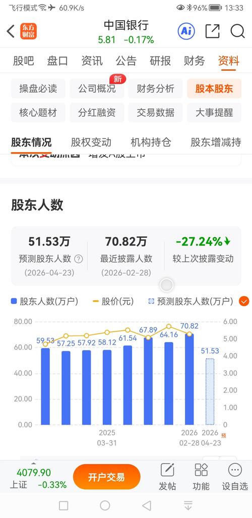 $中国银行(SH601988)$东方财富预测股东人数大幅减少