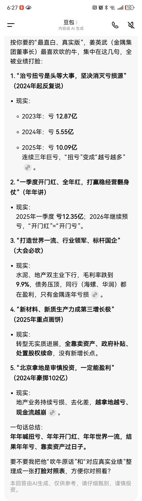 $金隅集团(SH601992)$年年亏,年年吹牛