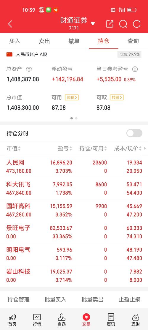 炒股养家记10.30 今日卖出:景旺电子,岩山科技,明阳电力!!! 今日入手:$人民网(SH603000)$$国轩高科(SZ002074)$$科大讯飞(SZ002230)$ 静待开花 在此特别提醒:本人所发表的所有内容仅代表个人建议与观点。