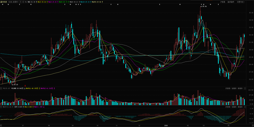 $晶方科技(SH603005)$阶段性小高点,在31-32这个平台磨几天,突破36的机会越大