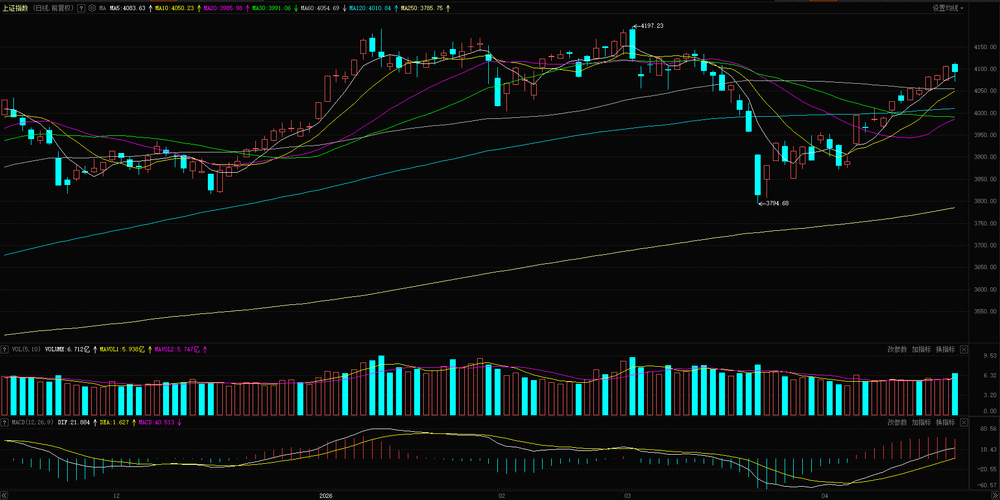 大家好,我是马哥,不追高、不冒进,只做低位埋伏,利用高抛低吸做波段,让利润在震荡中增长。关注马哥,带你提前潜伏,从容收割! 昨日沪指重返4100点,创业板综指创历史新高,两市成交额放量至2.56万亿元,AI算力链成为唯一的核心行情中枢;然而,指数全线收红的背后,全市场仍有超2400只个股下跌,"赚指数不赚钱"的结构性分化极为明显。今日是4月23日,距财报季收官仅剩6个交易日,业绩验证窗口进入决胜周...