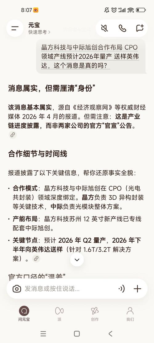 $晶方科技(SH603005)$ 经济观察网晶方科技与中际旭创在共封装光学领域开展合作,苏州新产线配套建设,预计2026年量产并送样英伟达。 业务进展情况: 双方在共封装光学(CPO)领域开展深度战略合作,联合开发1.6T/3.2T光模块解决方案。晶方科技负责3D异构封装等关键技术,苏州12英寸新产线已专线配套中际旭创,预计2026年第二季度实现量产,并计划在下半年向英伟达送样。 真的假的?