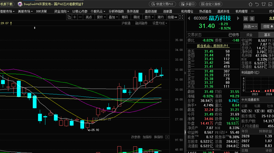 晶方科技收于31.40元,跌0.92%,成交额9.76亿元,换手率4.74%,盘中最低31.17元,最高32.24元,振幅3.25%,量比0.64。这是连续第二天缩量回踩5日线,在CPO、光模块、算力硬件板块集体大幅回调的背景下,晶方只跌了不到1%,也说明了抗跌性够强。开盘时有冲高试探32元的压力区,但由于科技当前承压情绪较重,导致不少恐慌、兑现紫金出逃,不过整体趋势上问题不大,当前市场高位的科技...