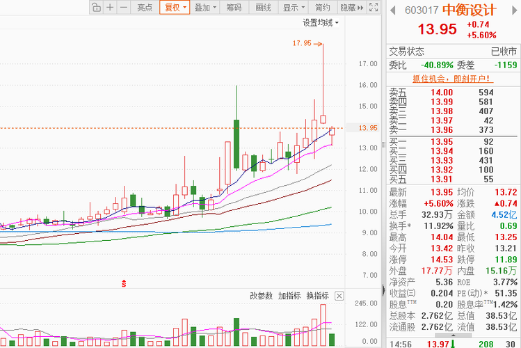 $中衡设计(SH603017)$如果明天补缺口14.2214.3414.5414.6414.78,这几个数老庄应该又要磨