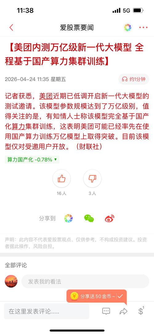 记者获悉,美团近期已低调开启新一代大模型的测试邀请。该模型参数规模达到了万亿级别,值得关注的是,有知情人士称该模型完全基于国产化算力集群训练,这表明美团可能已经率先在使用国产算力训练万亿模型上取得突破。目前该模型仅对受邀用户开放。(科创板日报)