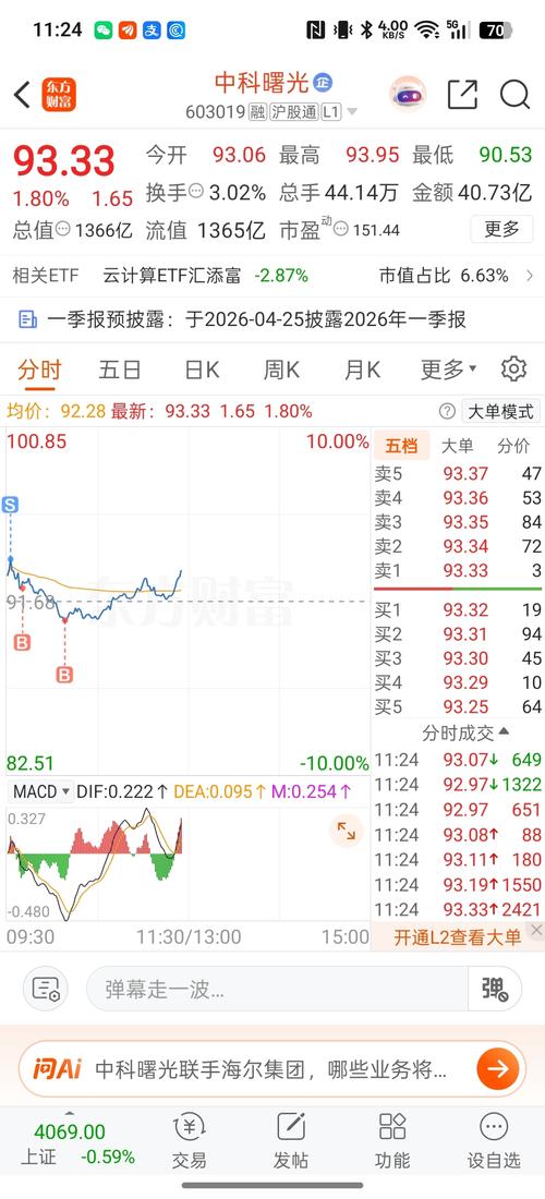 $中科曙光(SH603019)$曙光92.6已成功突破,下一个压力位95.6即将突破,进入上升通道