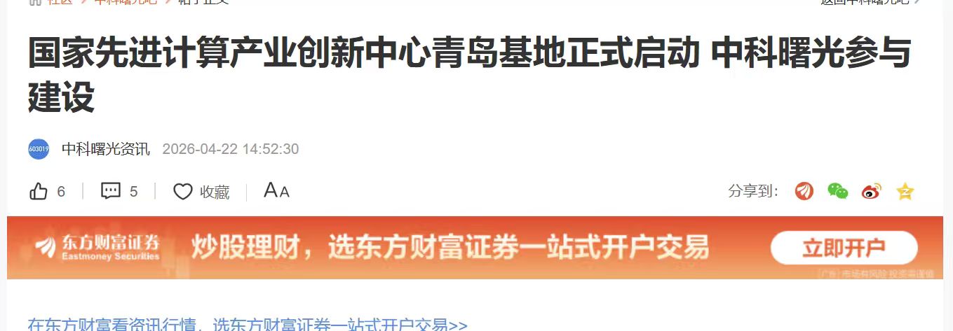 资讯 国家先进计算产业创新中心青岛基地正式启动 中科曙光参与建设