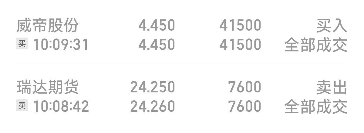 $威帝股份(SH603023)$$瑞达期货(SZ002961)$今作,卖了瑞达期货,进了威帝股份