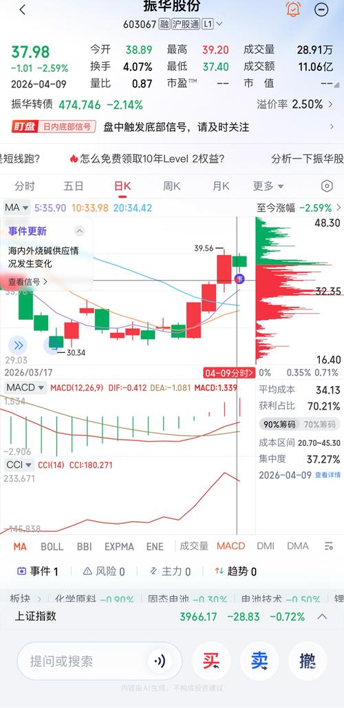 $振华股份(SH603067)$顶背离还好跑了留个底仓明天还会持续下跌今天的开盘价都突破不了下套37以下