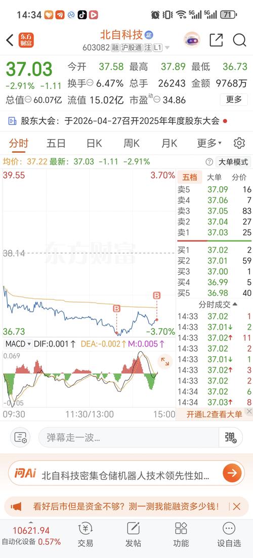 资讯 北自科技:融资净买入147.08万元,融资余额1.14亿元
